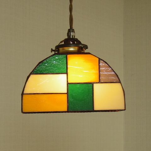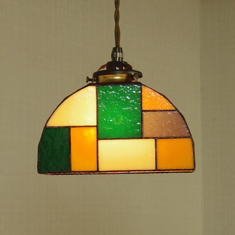 グリーン、イエローなどの不透明なガラスをパッチワーク風に。