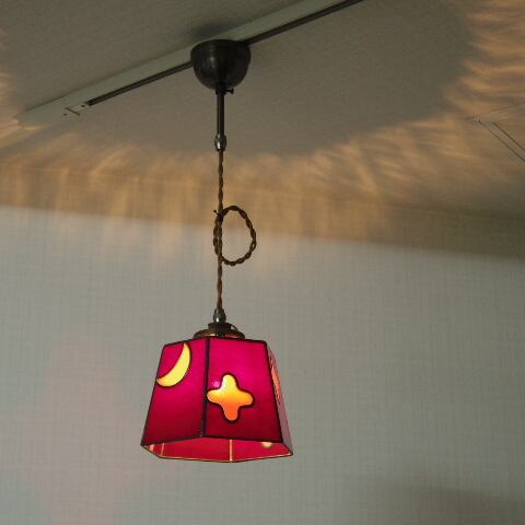 ディープレッドと、サーモンピンクのガラスを使いました。