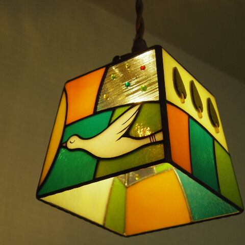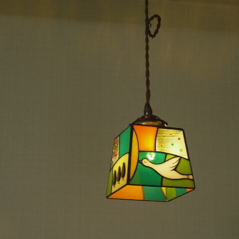 グリーンとオレンジ色のガラスで、暖かく懐かしい感じになりました。
